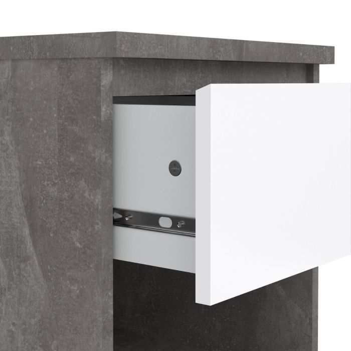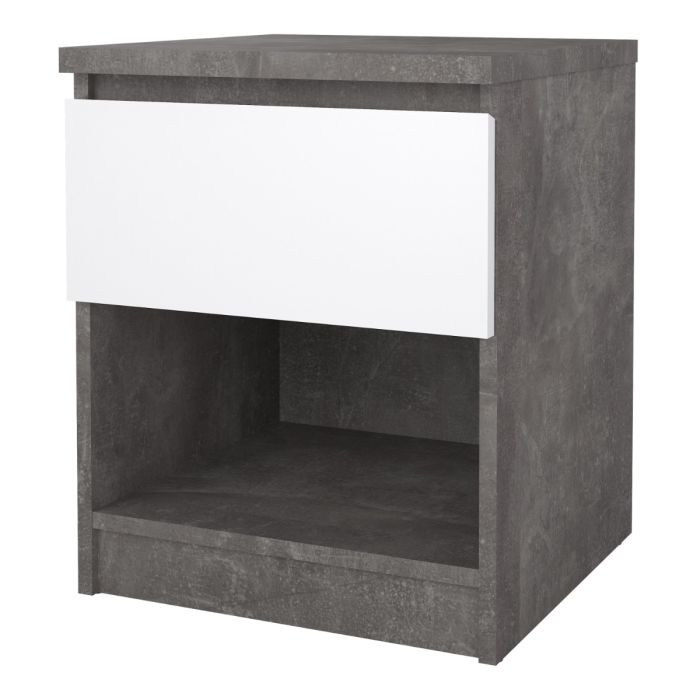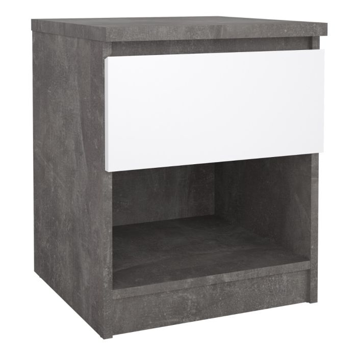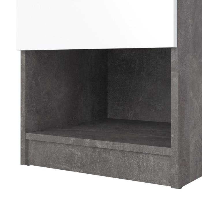 Naia Bedside 1 Drawer 1 Shelf in Concrete and White High Gloss