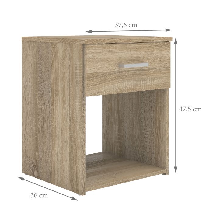 Albany 2 Drawer Bedside Table in Oak/Black Legs
