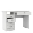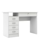Brighten your office space with the Function Plus White Desk featuring five drawers and a durable build. Ideal for storing paperwork and essentials, this Danish-made desk includes a key lock drawer and sleek, modern appeal.