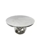 The Chelsea round table combines refined aesthetics with practical design. Its 1.3m diameter marble top provides an elegant dining surface with natural veining and durability, while the polished chrome frame delivers contemporary sophistication. The circular cross pedestal base ensures stability and maximises legroom, making it ideal for intimate gatherings or smaller dining spaces. A versatile centrepiece that balances modern styling with timeless appeal.