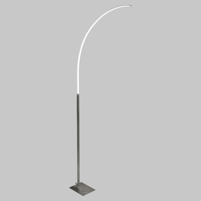 A modern metal LED Floor Lamp with a Satin Steel finish.