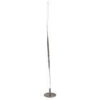 A tall modern metal LED Lamp with a single twisting light, made with a satin nickel finish.