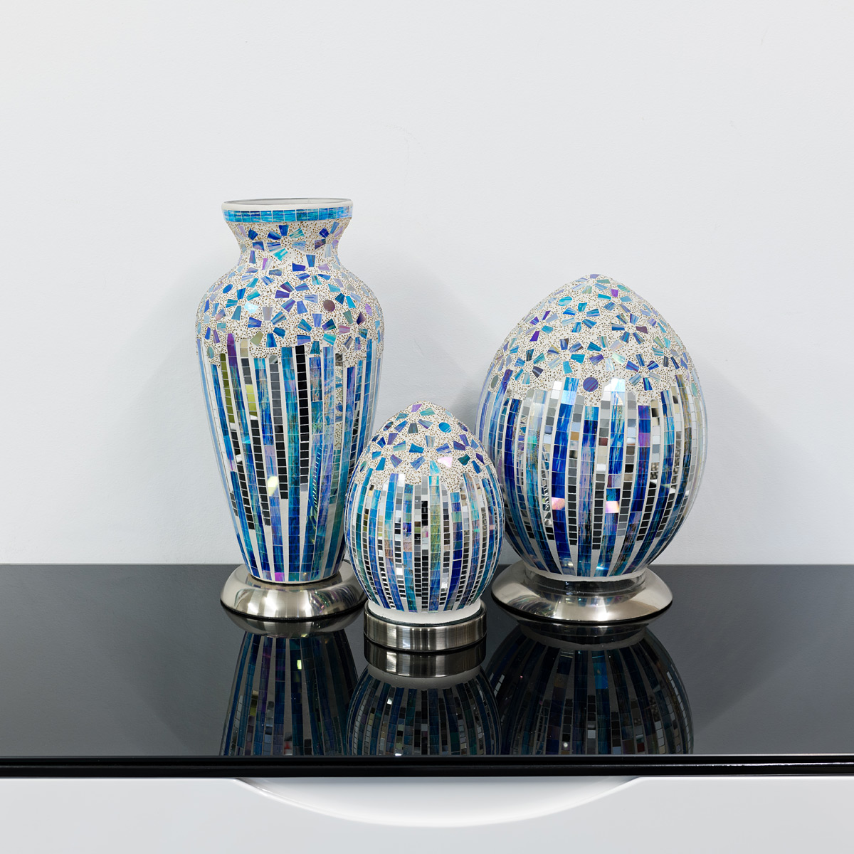 Mini Mosaic Glass Egg Lamp – Art Deco Blue