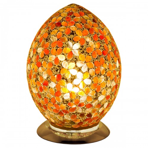 A beautiful piece of lighting that lightens up the room and the occasion with its unique sense of style from the first glance. The Mosaic Egg Lamp / Vase gives a soft mood light while creating a magical atmosphere and adding a romantic feel to any room.  our mosaic lamp range, the Amber Flower Mosaic Glass Egg Lamp. we love to combine functionality with style. In an amber-brown finish, with pale flower petal design, this lamp’s earthy tones will add warmth to your interior. This lamp gives off a wonderful glow when on and looks like a stylish ornament when off.Each Lamp is hand blown decorated glass. This lamp would be an asset to any bedroom or living room or make a great gift for someone special.