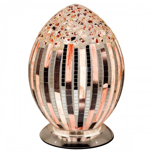 A beautiful piece of lighting that lightens up the room and the occasion with its unique sense of style from the first glance. The Art Deco Flower Mosaic Egg Lamp / Vase gives a soft mood light while creating a magical atmosphere and adding a romantic feel to any room. Each Lamp is hand blown decorated glass. In a gorgeous rose and chrome finish, with a fleck of gold, this lamp marries together a palette of colours to suit and bring together many interior styles. This lamp gives off a wonderful glow when on and looks like a stylish ornament when off.