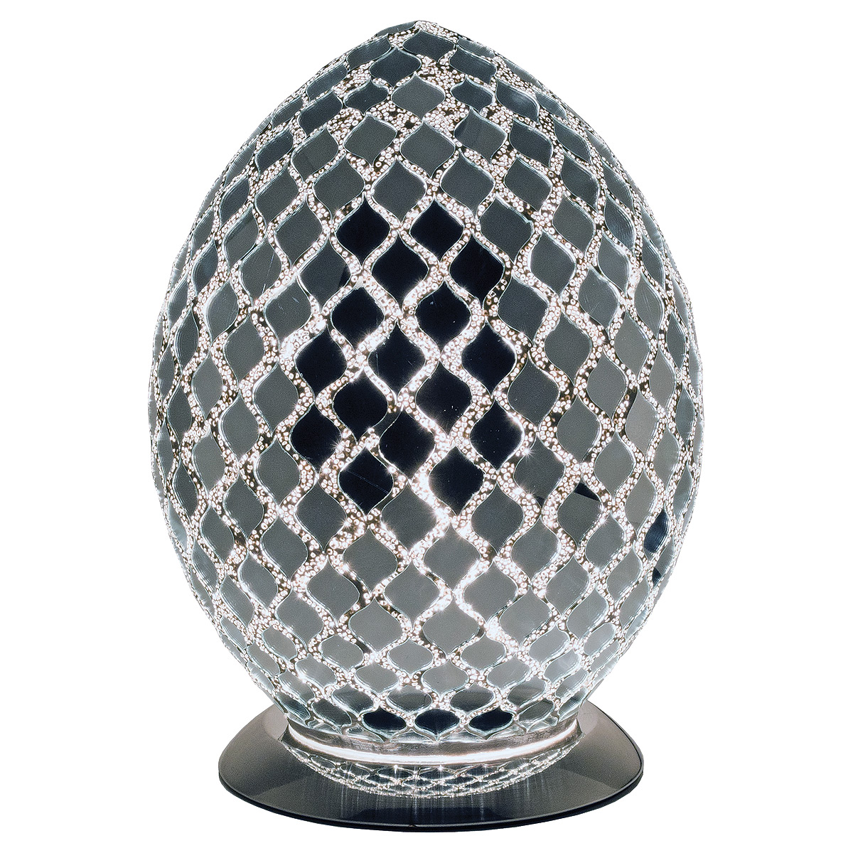 A beautiful piece of lighting that lightens up the room and the occasion with its unique sense of style from the first glance. The Mosaic Egg Lamp / Vase gives a soft mood light while creating a magical atmosphere and adding a romantic feel to any room. Each Lamp is hand blown decorated glass. This lamp would be an assett to any bedroom or living room or make a great gift for someone special.