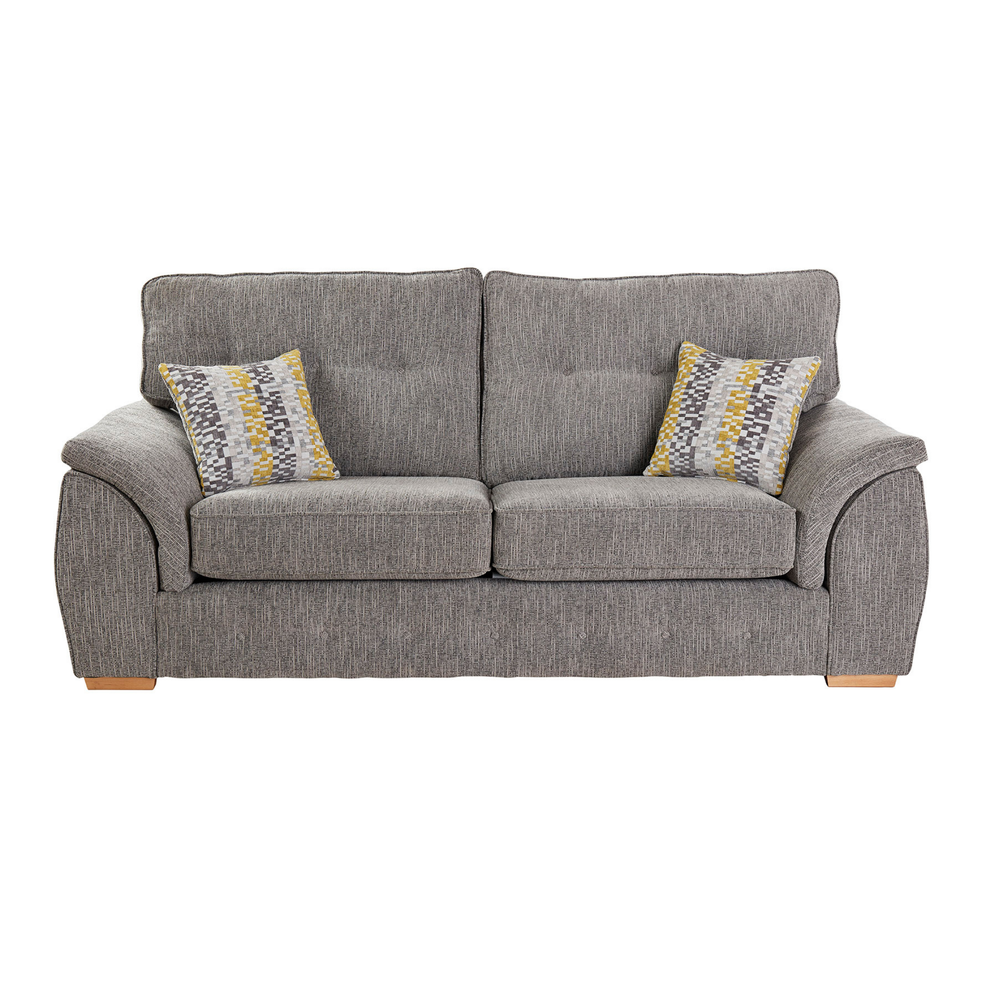 this design is complimented by its stylish button back cushions and front panels and comes with complimentary accent cushions. This sofa is perfect for evenings and lazy Sunday afternoons.