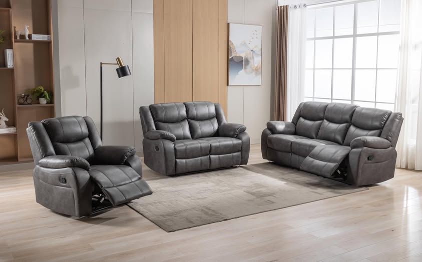 Bring modern comfort and style to your living room with the Paris Grey n  Range Sofas. Designed for those who want the best of both worlds, this manual recliner suite features a luxurious fabric leather look—offering the elegance of leather with the cozy feel of fabric, all within budget.